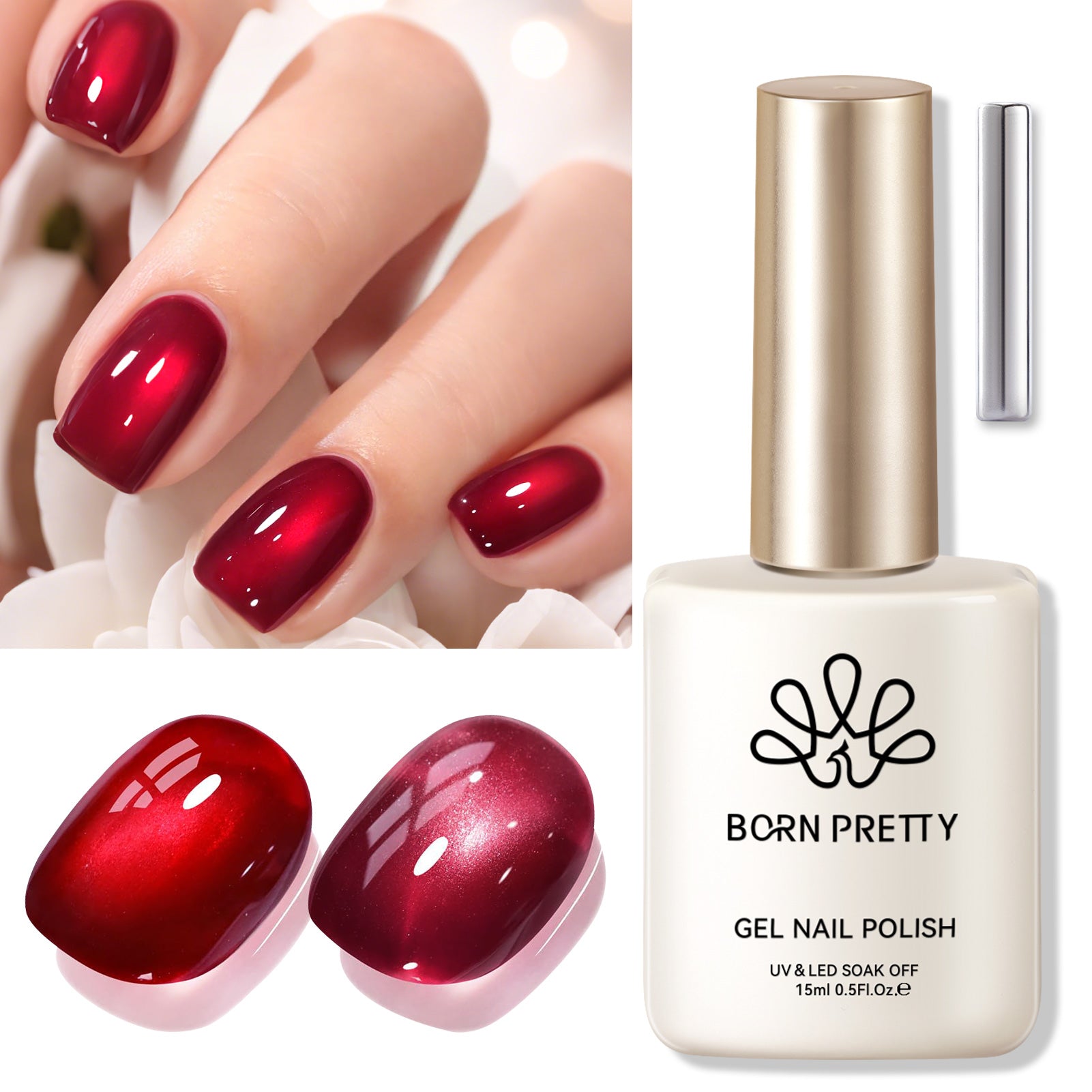 BORN PRETTY 15m Red Cat Magnetic Gel ultra Shine Soak Off UV Gel Nail Art Varnish.