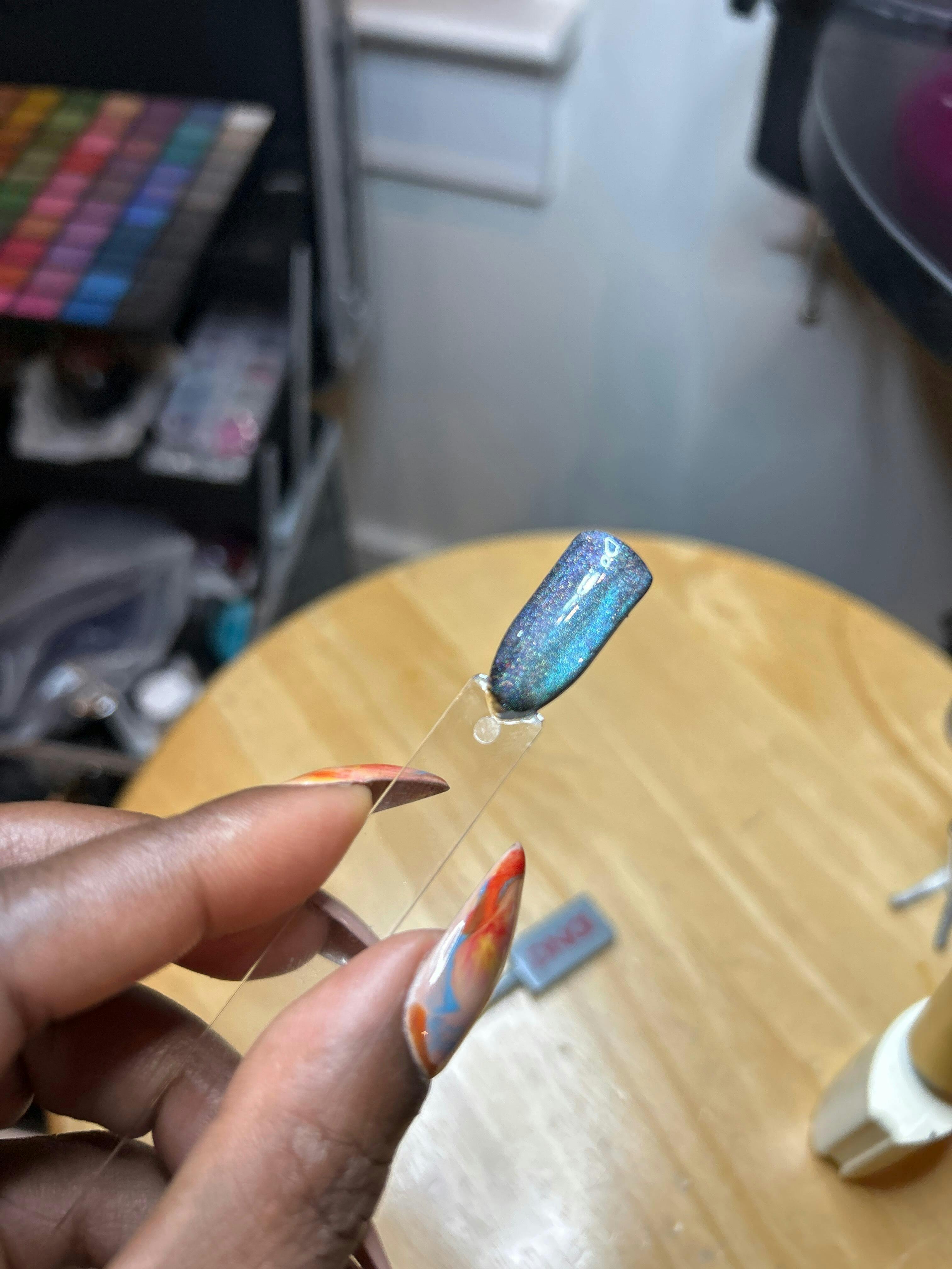Step 5.Apply second layer Cat Magnetic Gel and use magnetic stick ?push the shape again,then cure in 30-60s.