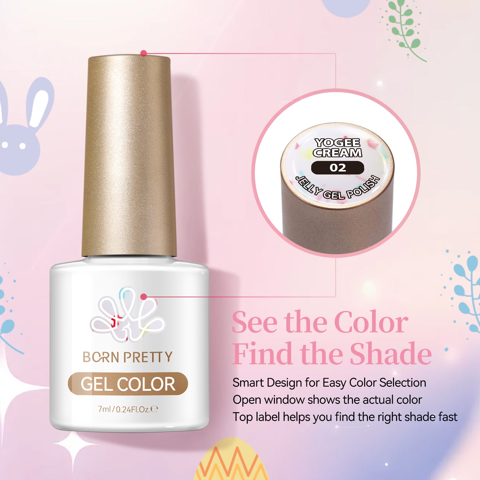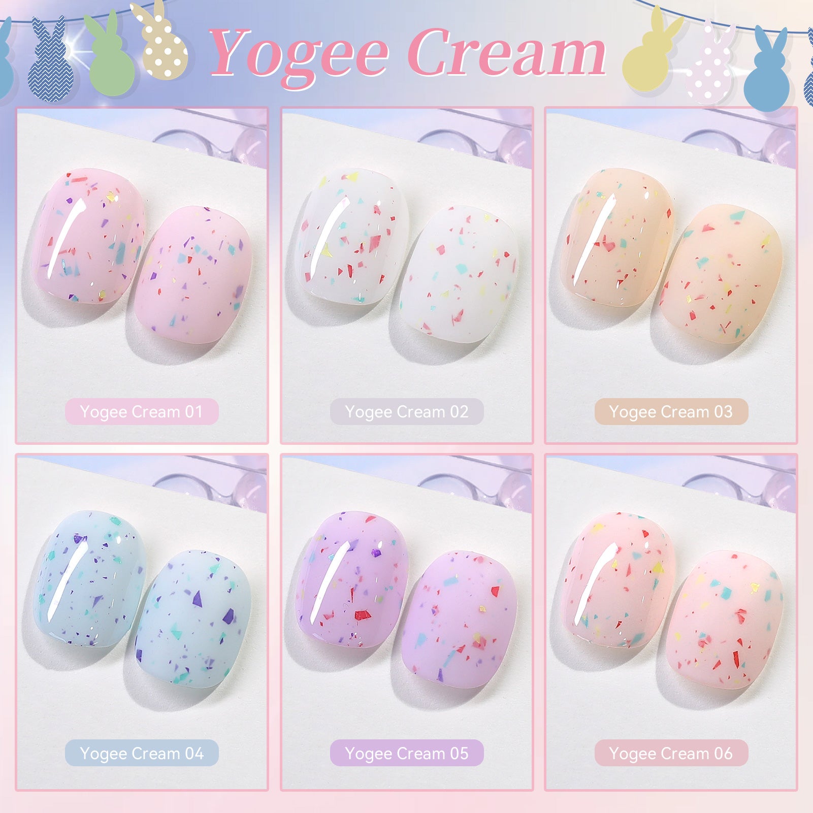 6 Bottles BORN PRETTY 7ml Yogee Cream Jelly Gel Polish Nail Supplies Vernis Semi Permanent Nail Art Manicure Soak Off LED UV Gel Nail Varnishes.