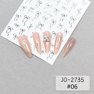 Home Silver Bowknot 3D Self Adhesive Nail Stickers