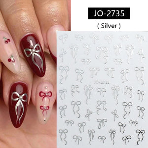 Silver Bowknot 3D Self Adhesive Nail Stickers