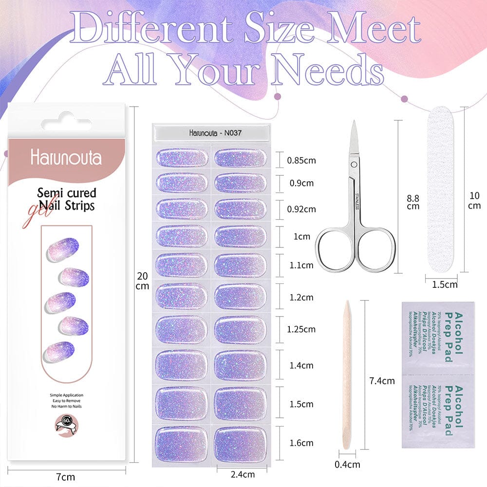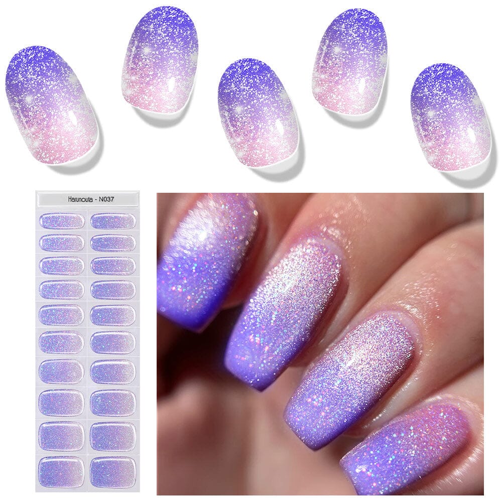 [US ONLY] 20 Tips Purple Shimmer Semi-Cured Gel Nail Strips N037 Nail Sticker Harunouta