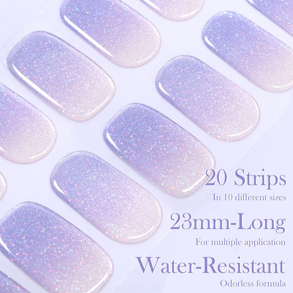 [US ONLY] 20 Tips Purple Shimmer Semi-Cured Gel Nail Strips N037