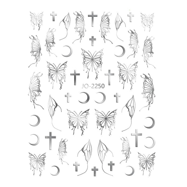 Silver Hollow Butterfly Moon Cross 3D Nail Sticker Silver JO-2250 #03