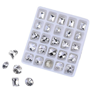 25pcs/box Mixed Shape Rhinestones #01 White