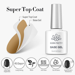 1 Bottle 10ml BORN PRETTY Base Gel, 1 Bottle 10ml BORN PRETTY Top Coat.