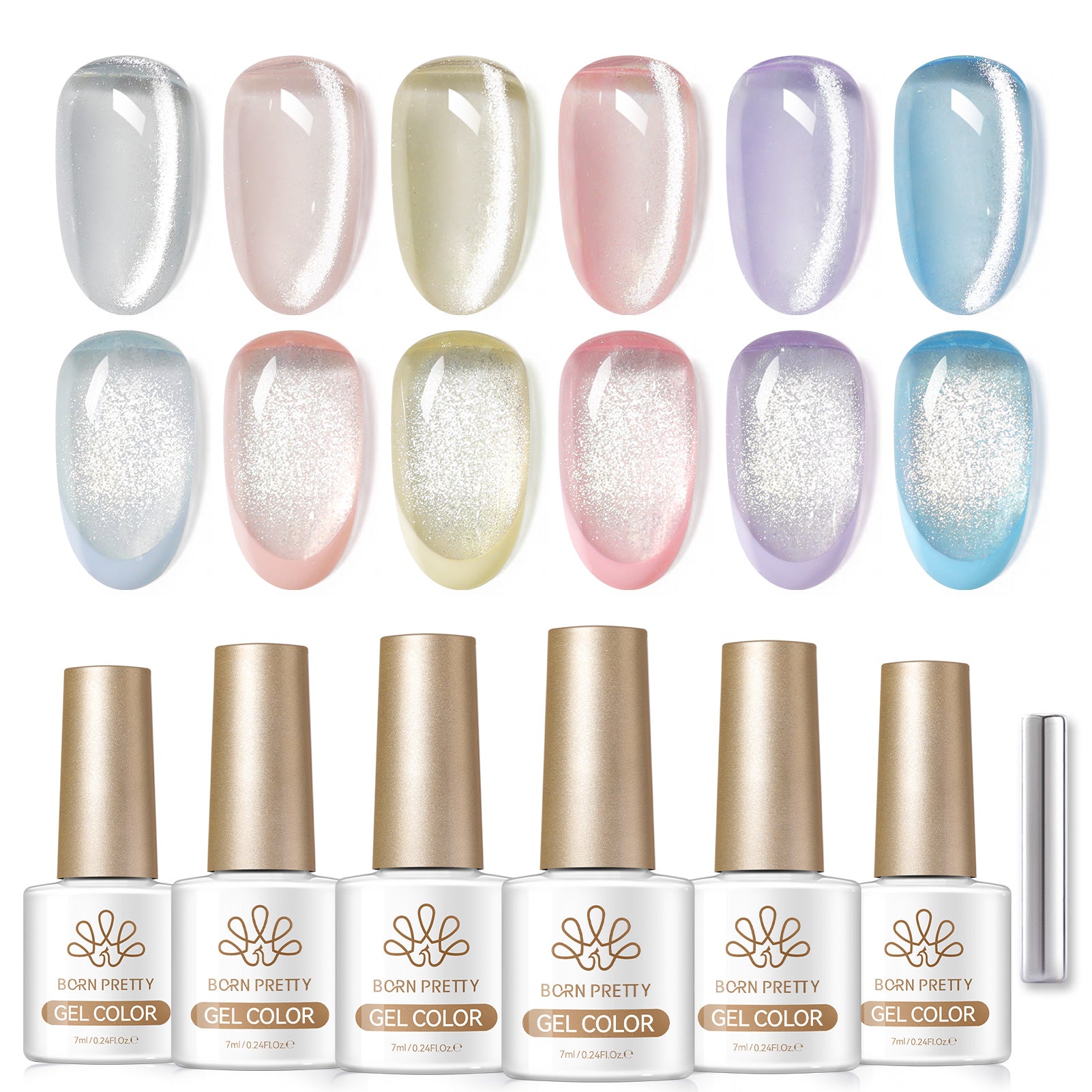 BORN PRETTY 6 Bottles 7 ml Spring Letter Cat Magnetic Gel ultra Shine Soak Off UV Gel Nail Art Varnish.