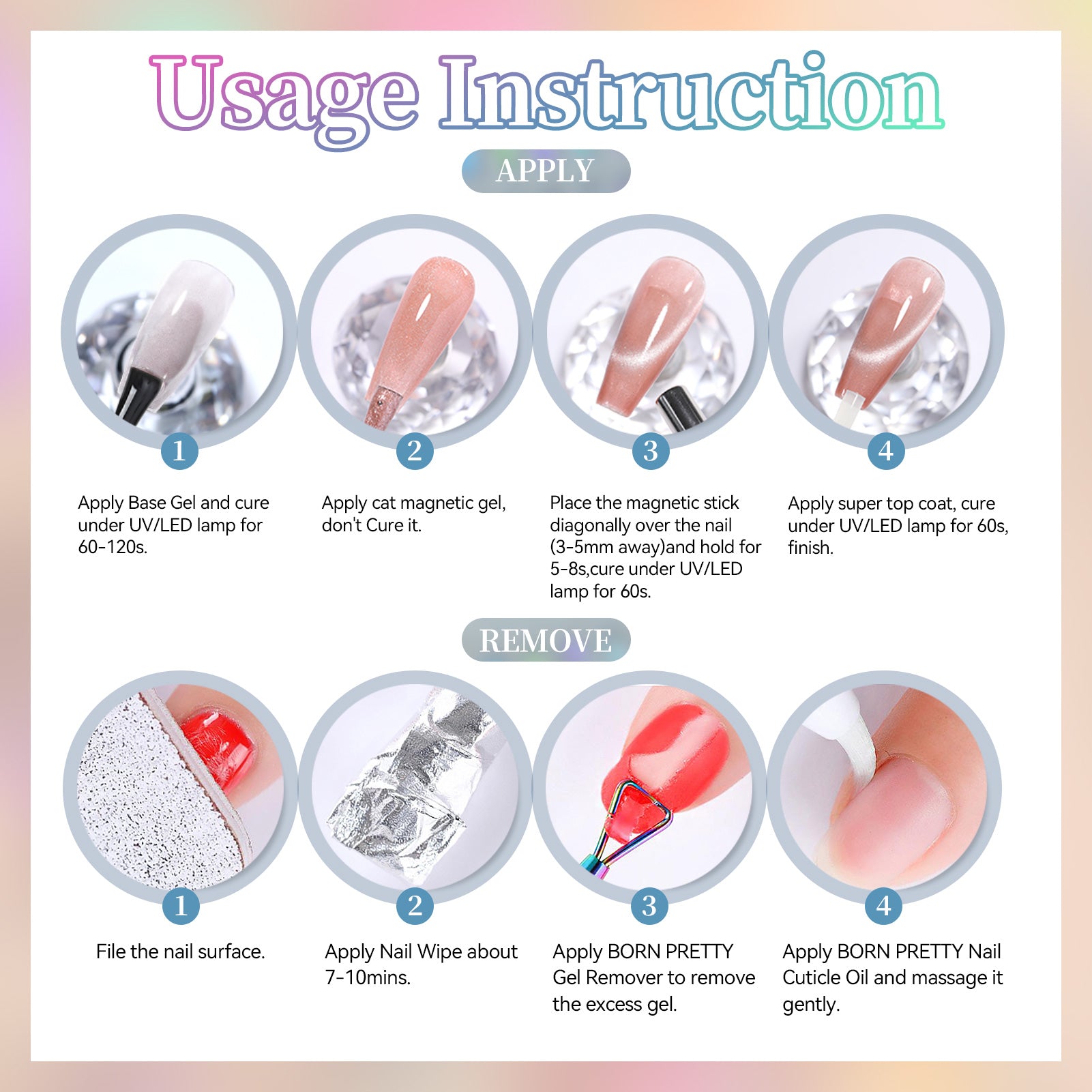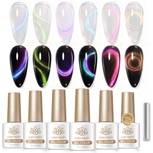 BORN PRETTY 6 Bottles 7 ml Colored Water Hydrating Cat Magnetic Gel ultra Shine Soak Off UV Gel Nail Art Varnish.