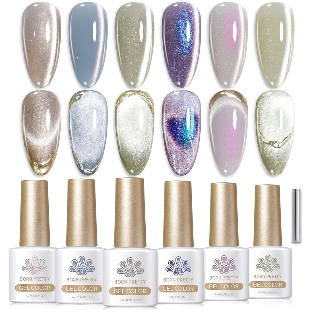 BORN PRETTY 6 Bottle 7ml Celestial Vault Cat Magnetic Gel ultra Shine Soak Off UV Gel Nail Art Varnish
