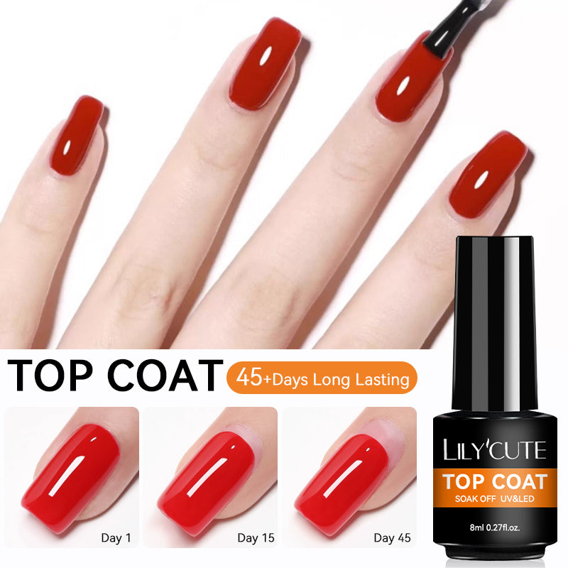Apply a thin layer of top coat, sealing the edges. Cure under UV lamp for 60s or LED lamp for 30s.