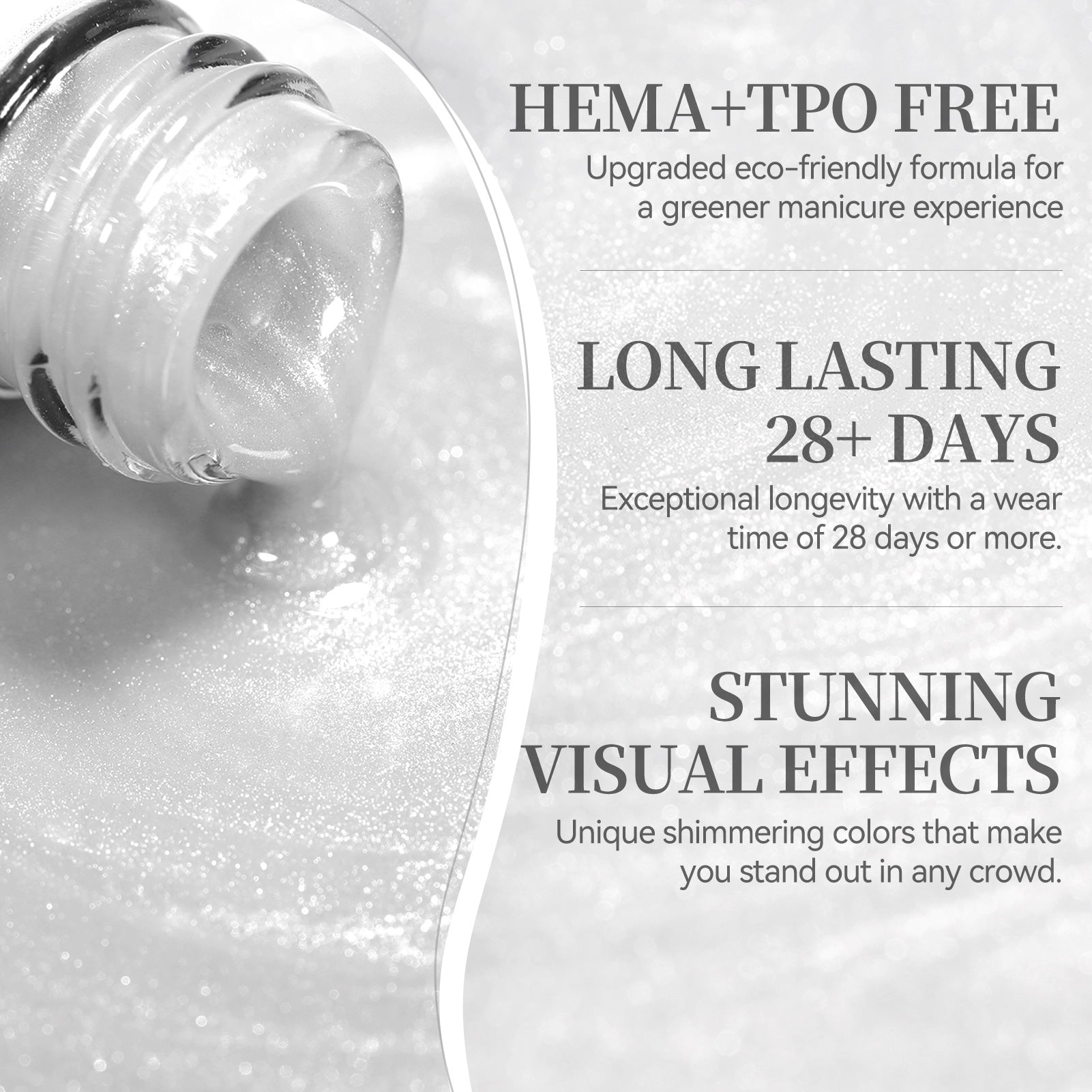 It is made of healthy, environmentally friendly, non-toxic, and non-irritating chemical materials. It is quick-drying with any UV Light.