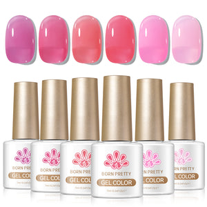 6 Bottles BORN PRETTY 7ml Beyond Usual Jelly Gel Polish Nail Supplies Vernis Semi Permanent Nail Art Manicure Soak Off LED UV Gel Nail Varnishes.