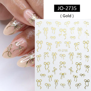 Gold Bowknot 3D Self Adhesive Nail Stickers