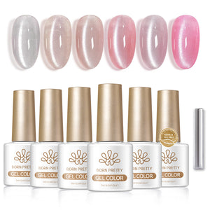BORN PRETTY 6 Bottles 7 ml Misty Dawn Crystal Cat Magnetic Gel ultra Shine Soak Off UV Gel Nail Art Varnish.