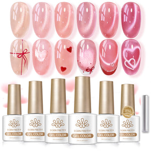 6 Bottles BORN PRETTY 7ml Peach Coral Sea Glass Bead Cat Magnetic Gel ultra Shine Soak Off UV Gel Nail Art Varnish.