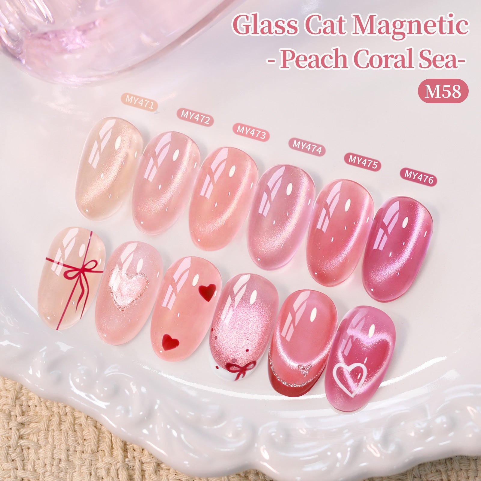 6 Colors Glass Cat Magnetic Gel M58 Peach Coral Sea 7ml HEMA/TPO FREE