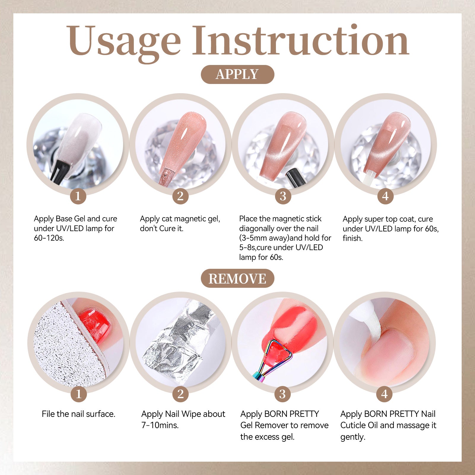 BORN PRETTY 1 Bottle 15 ml Dream Nude Glass Bead Cat Magnetic Gel ultra Shine Soak Off UV Gel Nail Art Varnish.