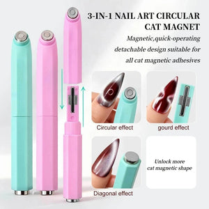Function: Multi-functional 3-in-1 tool for creating various cat magnetic nail art effects.