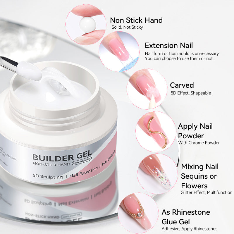 No Stick Hand Builder Gel Milky White #02 60g HEMA FREE