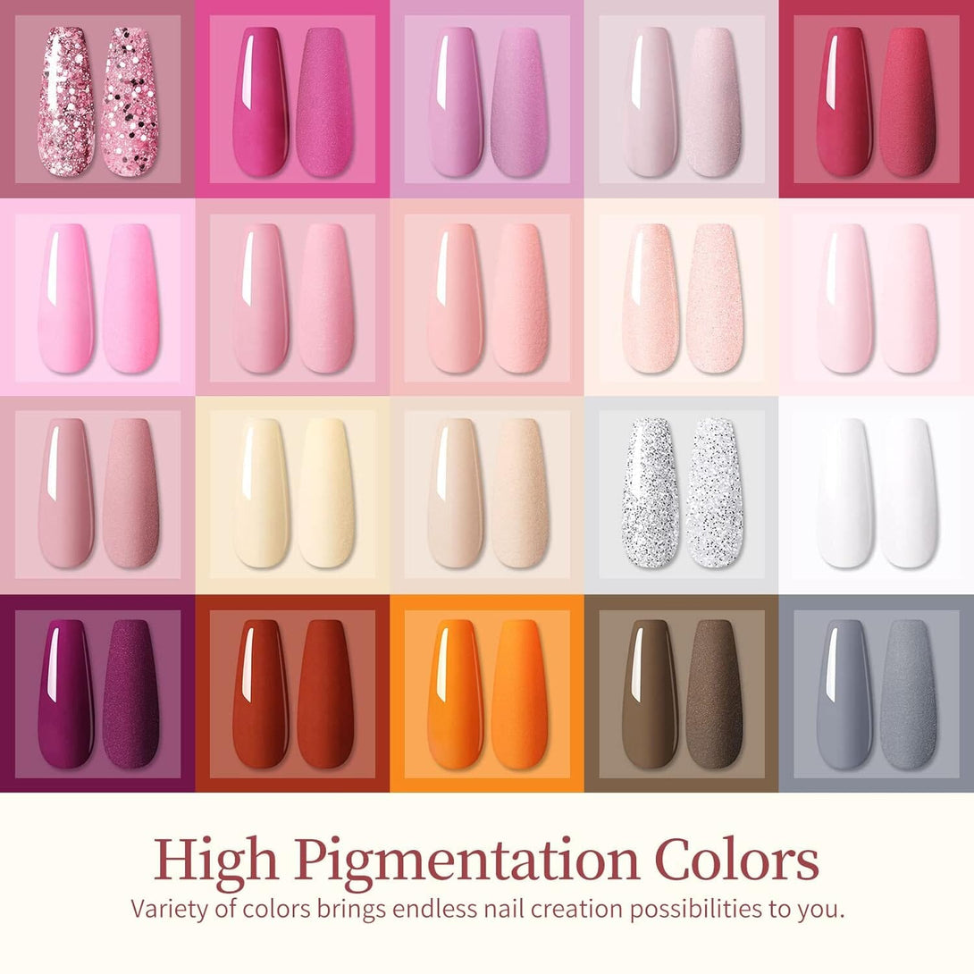 [US ONLY] 20 Colors Dipping Nail Powder Starter Kit with Base&Top, Activator, Brush Saver