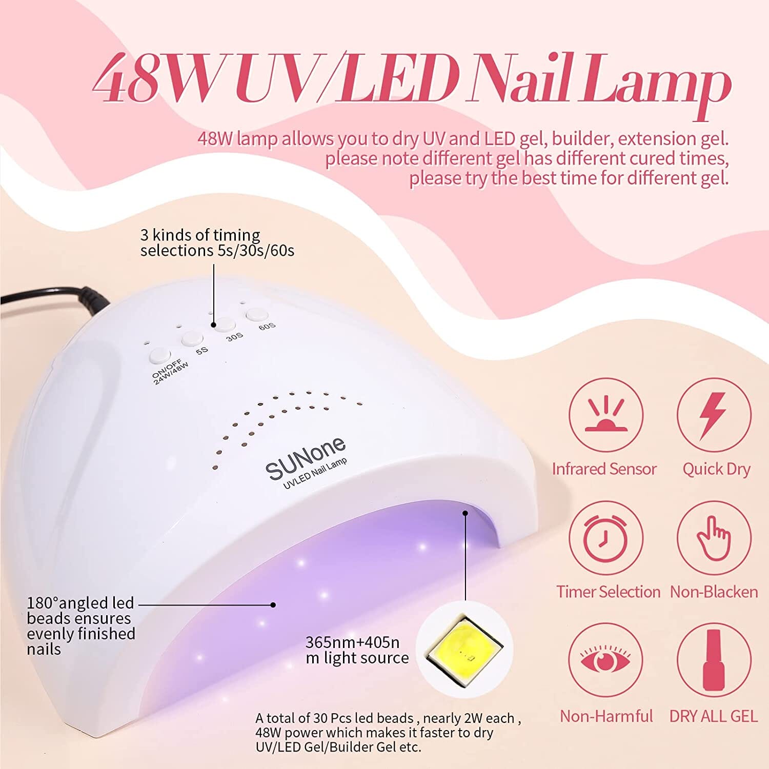 - 48W SUPER FAST NAIL LAMP: Dual-light source lamp beads, which cures quickly; it has a LCD display and timer buttons, which make it more convenient for you to use; smart sensors, just put your hand in and the light will turn on automatic light, release, the light will automatically go out. Suitable for professional salons and personal families.