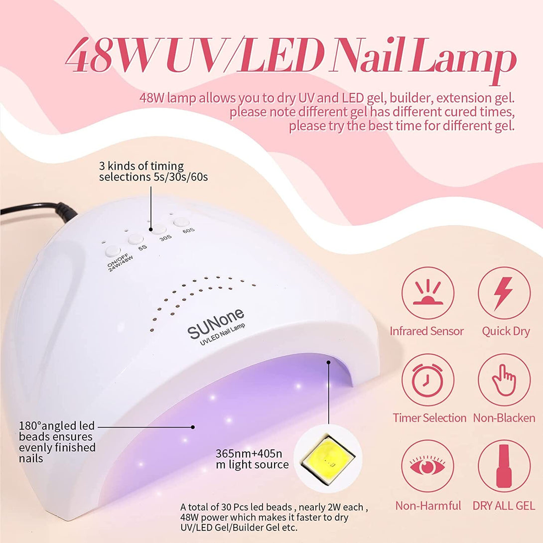 [US ONLY] All-In-One Starter Kit 15pcs Gel with 48W Nail Lamp Nail Tools
