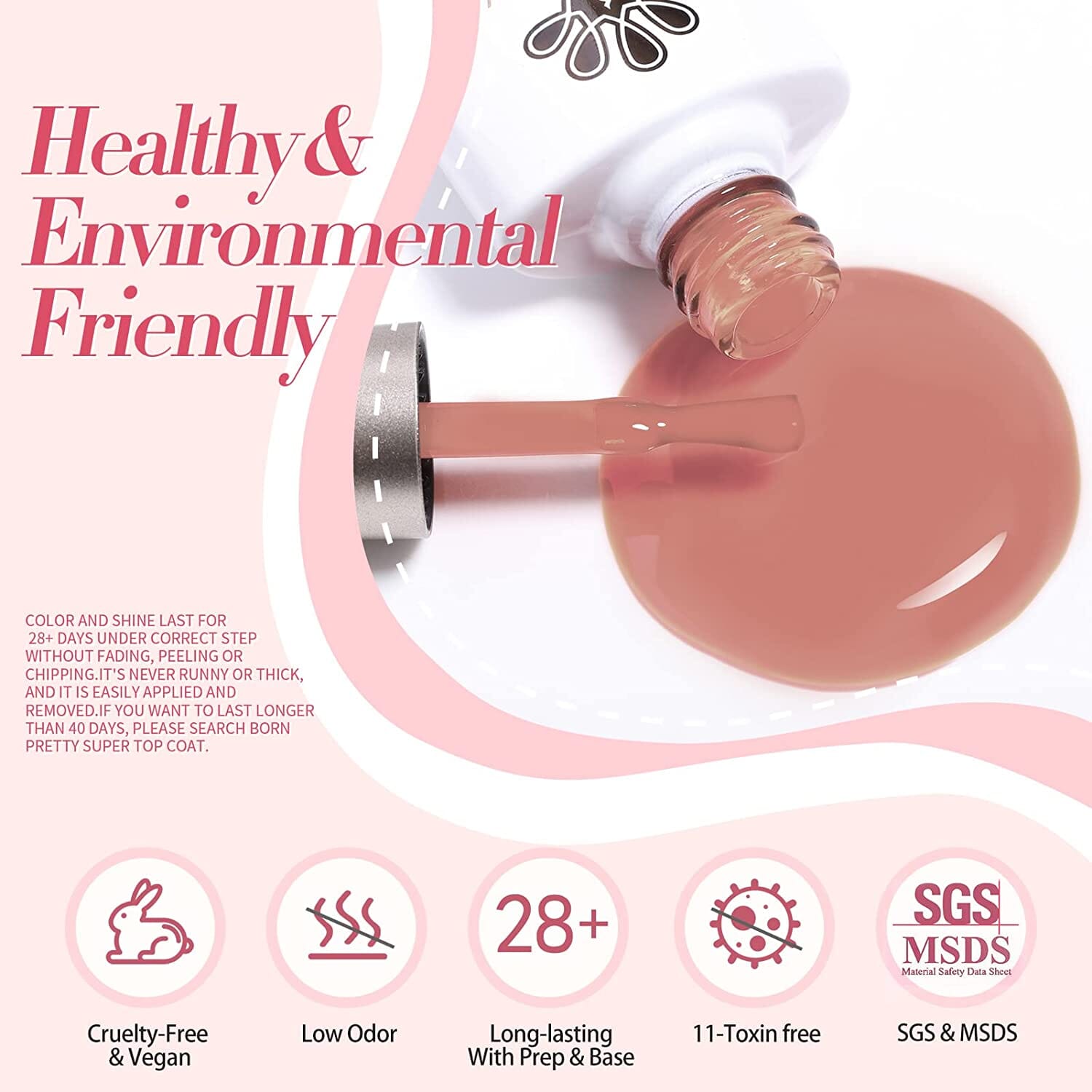 - WARM NOTICE: Nail gel polish has different color differences in different light sources, displays and coatings. The color card shown in the picture is coated with two layers of color gel. When you encounter any problems, please feel free to contact Born Pretty.