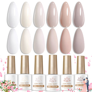 6 Bottles BORN PRETTY 7ml In Between Nail Gel Polish Nail Supplies Semi Permanent Nail Art Manicure Soak Off LED UV Gel Nail Varnishes.