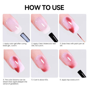 2. Apply Clear Watercolor Nail Gel, not cure it.