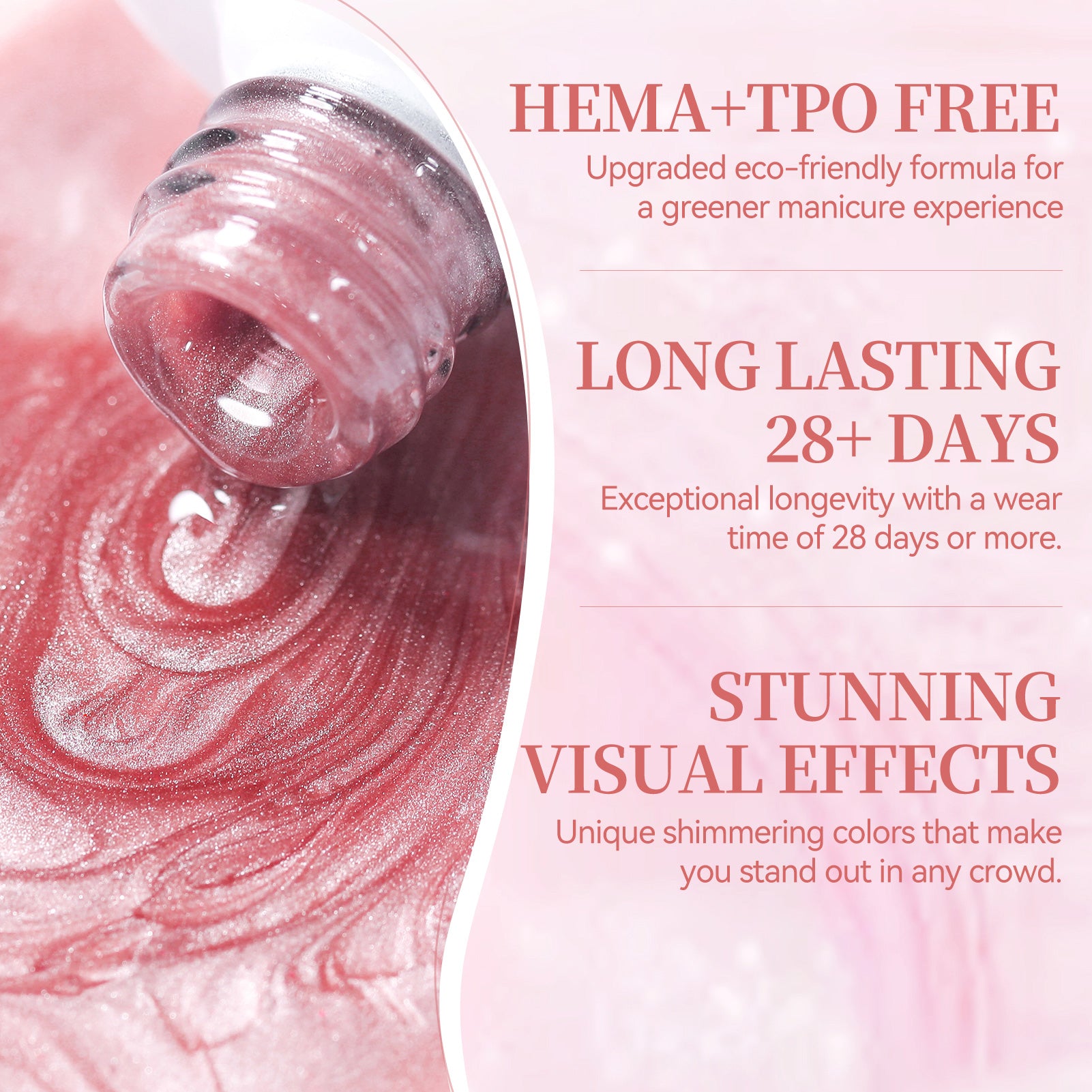 It is made of healthy, environmentally friendly, non-toxic, and non-irritating chemical materials. It is quick-drying with any UV Light.